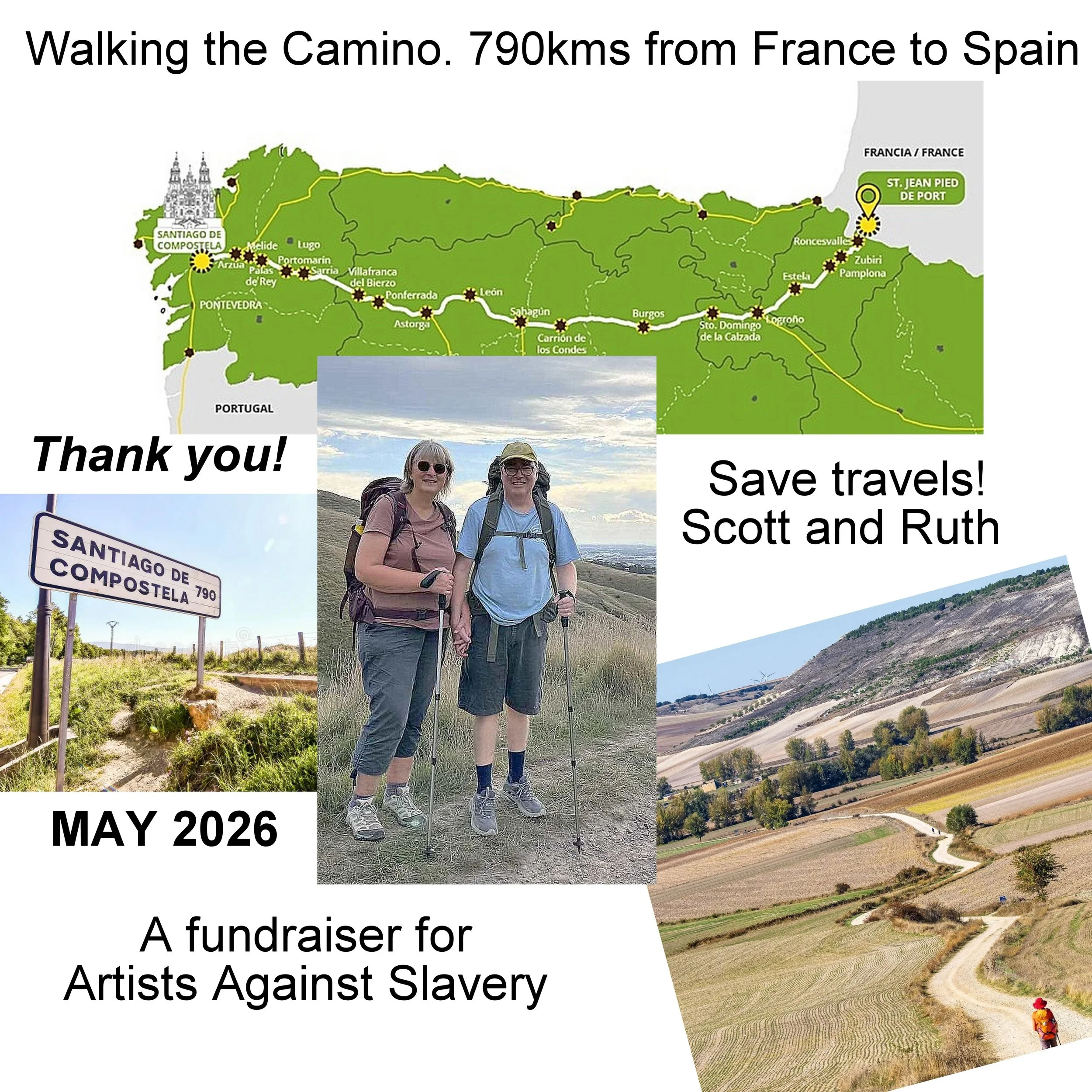 MAY 2026. Scott and Ruth walk the Camino from France to Spain. 800kms.